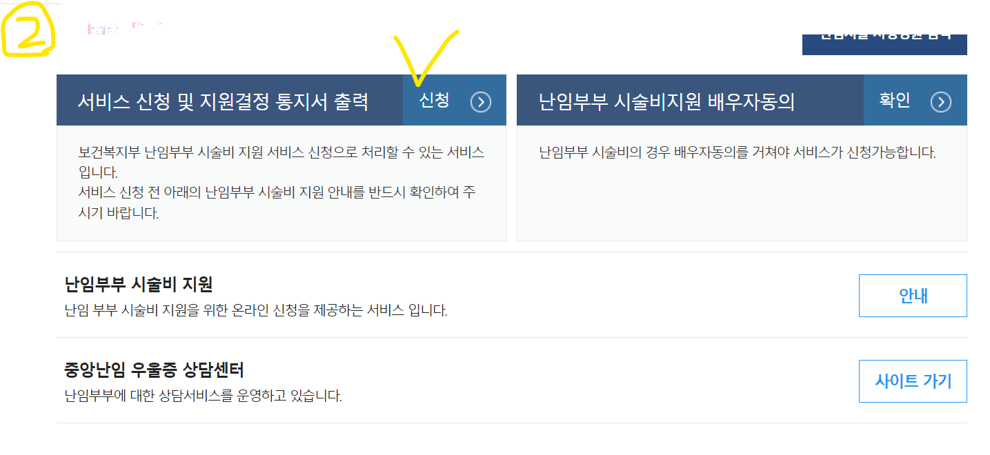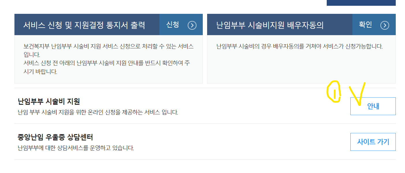 2. 노란색 체크부분인 난임부부 시술비 지원 클릭