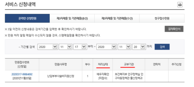 온라인 신청 민원 확인 가능 하십니다 . 배우자 동의가 필수이며 배우자가 동의하셔야 신청 완료 됩니다.